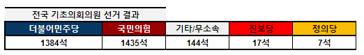 실제로, 전국 광역의회의원과 전국 기초의회의원 선거 결과에서도, 국민의힘이 좀더 많은 의석수를 확보하게 되면서,